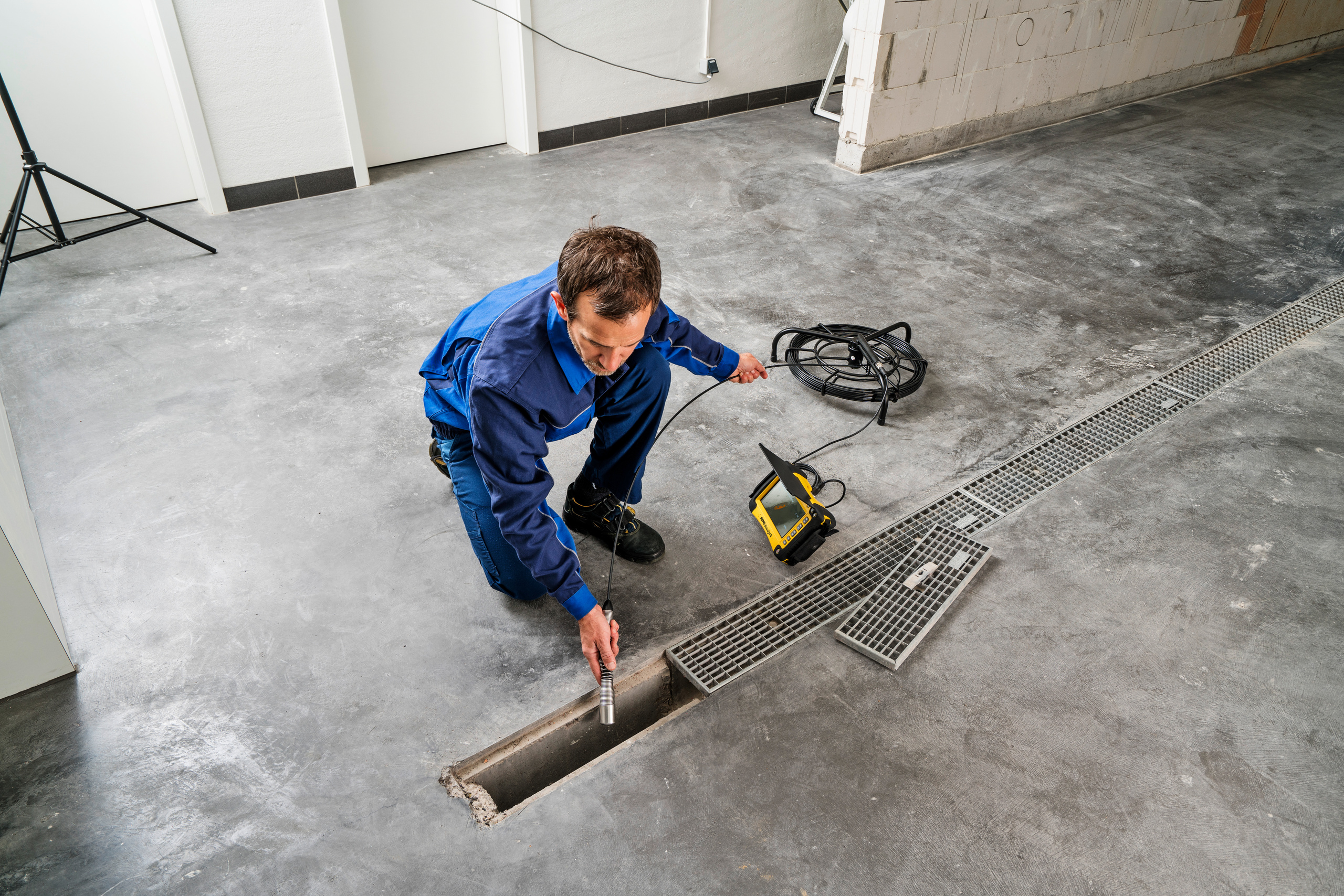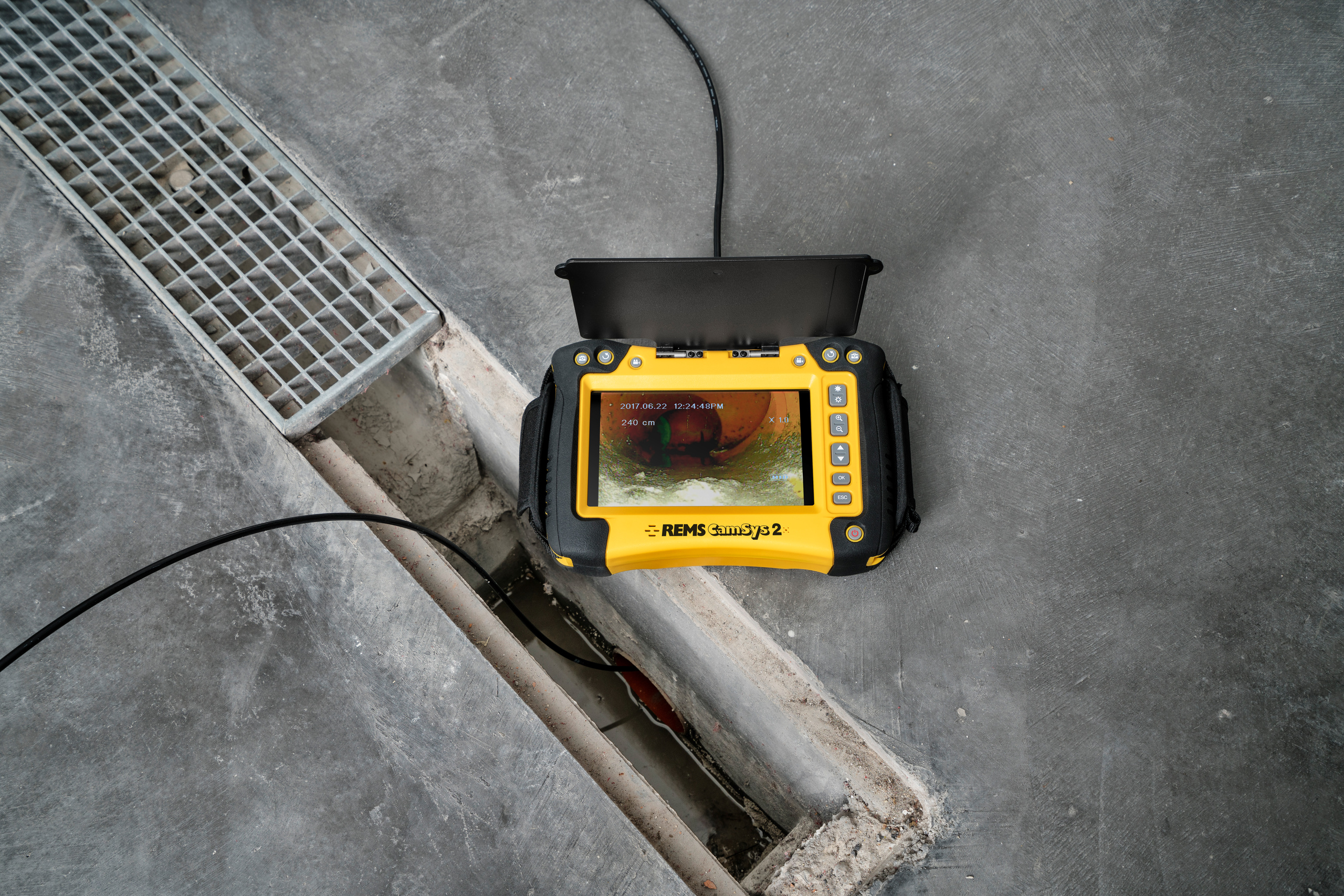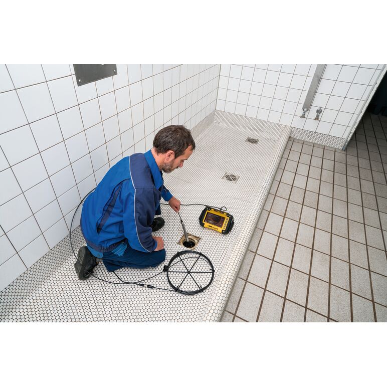 Σετ καλωδίου κάμερας S-Color με υψηλής ανάλυσης ειδική έγχρωμη κάμερα με αισθητήρα εικόνας CMOS και καλώδιο ώθησης. Υψηλής ανάλυσης ειδική έγχρωμη κάμερα Ø 33 mm, αυτοευθυγραμμιζόμενη, με πομπό 33 kHz για τον εντοπισμό της κεφαλής της κάμερας, καλώδιο ώθησης 30 m, Ø 5,4 mm, εύκαμπτο, σε μασούρι με ηλεκτρονικό μετρητή μήκους.