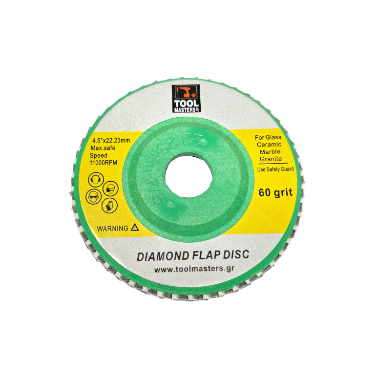 Τροχός λείανσης διαμαντέ πολύφυλλος Φ115mm με κόκκωση 60 & οπή 22,23mm. Κατάλληλος για μάρμαρο, γρανίτη, κεραμικά, πορσελάνη & μπετόν. Μπορεί να δουλέψει με νερό ή στεγνά.